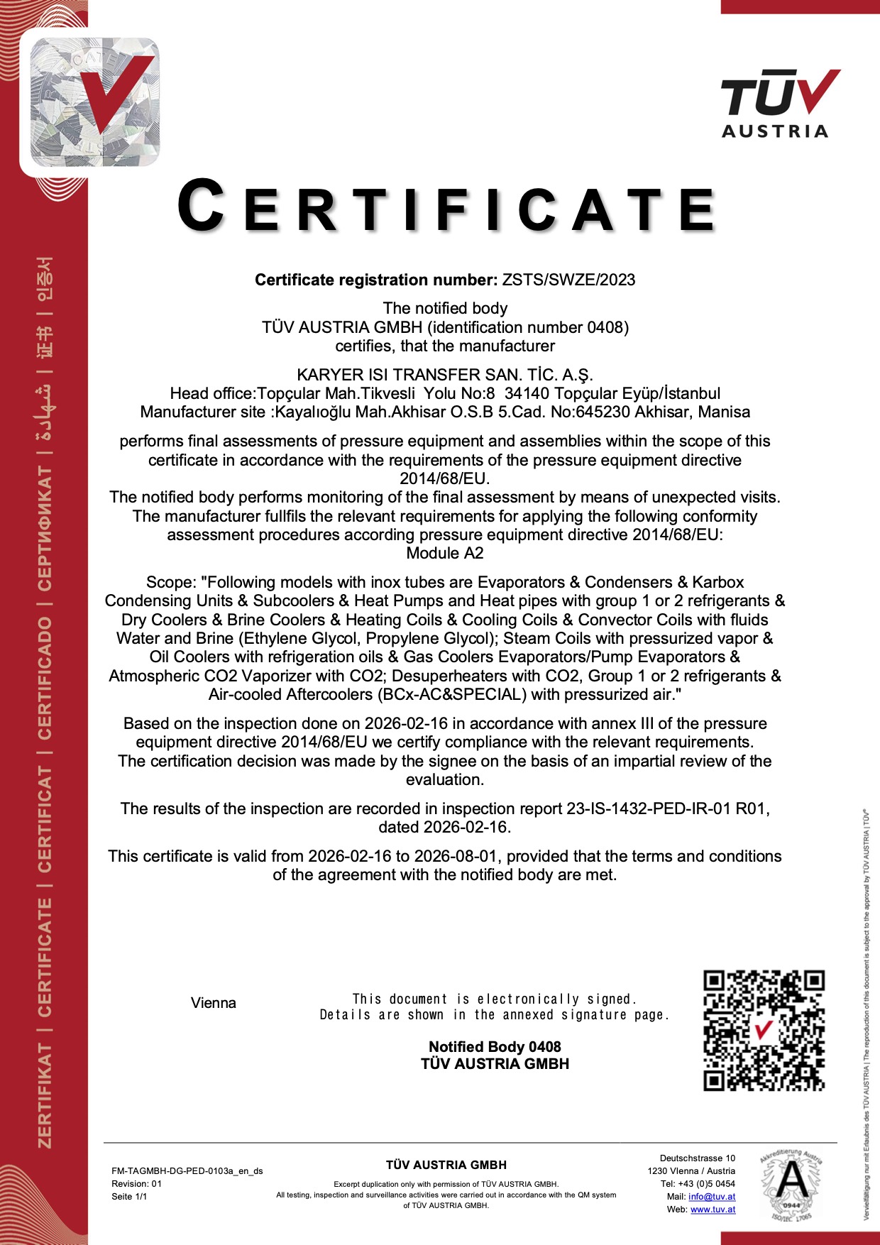Sertifikalar Ürün ve kalite sertifikalarımızı aşağıdan detaylı inceleyebilir, bu linke tıklayarak indirebilirsiniz. UL Onaylı Komponent Serfitikası EUROVENT Performans Sertifikası ISO 9001:2015 ISO 14001:2015 ISO 45001:2018 CE 2014/35/EU CE 2014/68/EU (PED) UKR-SEPRO ISO/IEC 27001:2022 IATF 16949: 2016 Sedex Sorumlu ve Etik iş ilkeleri Uyumluluk Belgesi